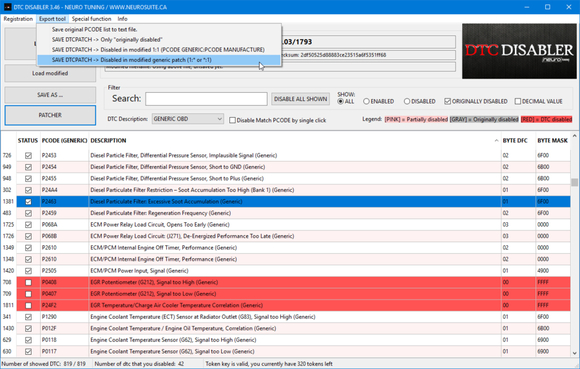 DTC Disabler is a very handy new software, mainly applicable to the MEDC17 ECU. We are gradually incorporating MDG1s files into it. We have tested it for 2 years and it is essential for our NEURO Tuning company.We have developed an algorithm which extracts, from the assembly part of the binary file, the offset, the size of the DTC blocks with precision without possible human error. We have also integrated a module that works with virtual read files which do not always contain the assembly part. In this case, our algorithm will use a pre-learned model from a known file to identify the exact values. DTC OFF: This is the main function, allowing you to turn a DTC off quickly and precisely. The bytes (dfc) and mask will turn off which avoids a limp-mode situation. For example to create an 'open loop boost' file, we start by deactivating the codes deactivating the overboost / underboost codes. PATCH FUNCTION: You can EXPORT and EXECUTE patch to your current file. It's a big time saver. You can make your own patch database and disable component by a single click. File support: In case your file is not recognized at all, a button will appear allowing you to report and flag the file. We will instantly receive a notification. The definition of your file generally takes between 5 and 15 minutes to add but could take up to 48 hours depending on our workload. You will receive an email when the definition is ready. Over 6000 files tested since mars 2021, get the file list HERE COMPLETE COMPATIBILITY LIST: ACDELCO E98, EDC17C08, EDC17C10, EDC17C19, EDC17C41, EDC17C46, EDC17C49, EDC17C50, EDC17C53, EDC17C54, EDC17C55, EDC17C56, EDC17C57, EDC17C64, EDC17C69, EDC17C74, EDC17C76, EDC17C79, EDC17CP04, EDC17CP05, EDC17CP07, EDC17CP09, EDC17CP10, EDC17CP14, EDC17CP20, EDC17CP24, EDC17CP44, EDC17CP45, EDC17CP46, EDC17CP47, EDC17CP52, EDC17CP54, EDC17CP55, EDC17CP57, EDC17CP65, EDC17CV41, EDC17CV44, EDC17CV45, EDC17CV52, EDC17CV56, EDC17U01, EDC17U05, ME17.3.0, ME17.5.20, ME17.5.26, ME17.5.6, ME7.5, MED17, MED17.1, MED17.1.1, MED17.1.21, MED17.1.27, MED17.1.6, MED17.1.62, MED17.1.63, MED17.1.9, MED17.2.2, MED17.3.1, MED17.3.4, MED17.4.2, MED17.4.4, MED17.5, MED17.5.1, MED17.5.2, MED17.5.20, MED17.5.21, MED17.5.5, MED17.7, ME17.8.3, MED17.8.31, MED17.8.5, MED17.9.3, MED17.9.8, MED17.X MB, MED91, MEVD17.2, MG1CS001, SID209, SIMOS12.2, SIMOS18 USAGE COST: PER FILE: 10 TOKENS (20$USD) DTC DISABLER UPDATE LOG: 2023.10.12 – Version V4.10 Info: More than 6500 files served now! Database is growing fast. File list has been updated: https://neurosuite.ca/dtcdisabler_filelist.html 2022.11.21 – Version V3.56 Added: MCLAREN BOSCH ME17.8.3 compatibility 2021.12.07 – Version V3.35 Added: LAND ROVER BOSCH MEDC17.9 and SUZUKI BOSCH ME17.9.21 compatibility "DISABLE ALL SHOWN" feature (e.g., search 'EGR' and disable all DTCs shown in one click) 2021.11.15 – Version V3.34 Added: ME17.9.11 to DTC Disabler compatibility 2021.11.01 – Version V3.31 Added: SIMOS file recognition 2021.09.29 – Version V3.25 Added: SID209 compatibility 2021.06.25 – Version V3.19 Improvements: Function improved 2021.04.09 – Version V3.17 Added: More variant support (ME7, MED9) Fixes: GUI minor fix 2021.01.20 – Version V3.15 Added: First public release version MORE SCREENSHOTS ![]() ![]() ![]() ![]() ![]() ![]() ![]() ![]() ![]() |